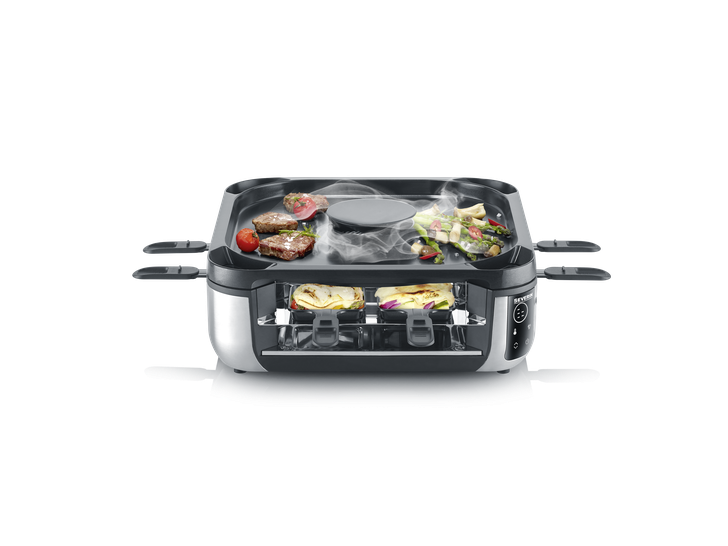 Het design is modern en elegant, met een luxe afwerking in geborsteld staal en een digitaal touchscreen waarmee je eenvoudig de temperatuur en filtersterkte instelt. Na afloop kunnen zowel de grillplaat als de pannetjes gewoon in de vaatwasser – wel zo fijn na een lange avond tafelen.